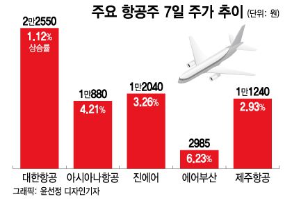 저비용 항공사(LCC)인 에어부산은 6%대 강세를 보였고 진에어는 3%대, 제주항공과 티웨이항공은 2%대 올랐다.