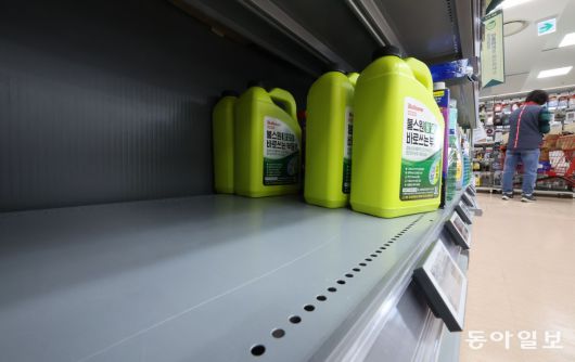 중국 정부가 자국의 요소 공급 차질을 우려해 수출을 제한하면서 국내 요소수 품귀 현상이 나타나고 있는 가운데 이달 6일 오전 서울시내의 한 대형마트 차량용품 코너 요소수 매대가 텅 비어있다. 박형기 기자 oneshot@donga.com |
