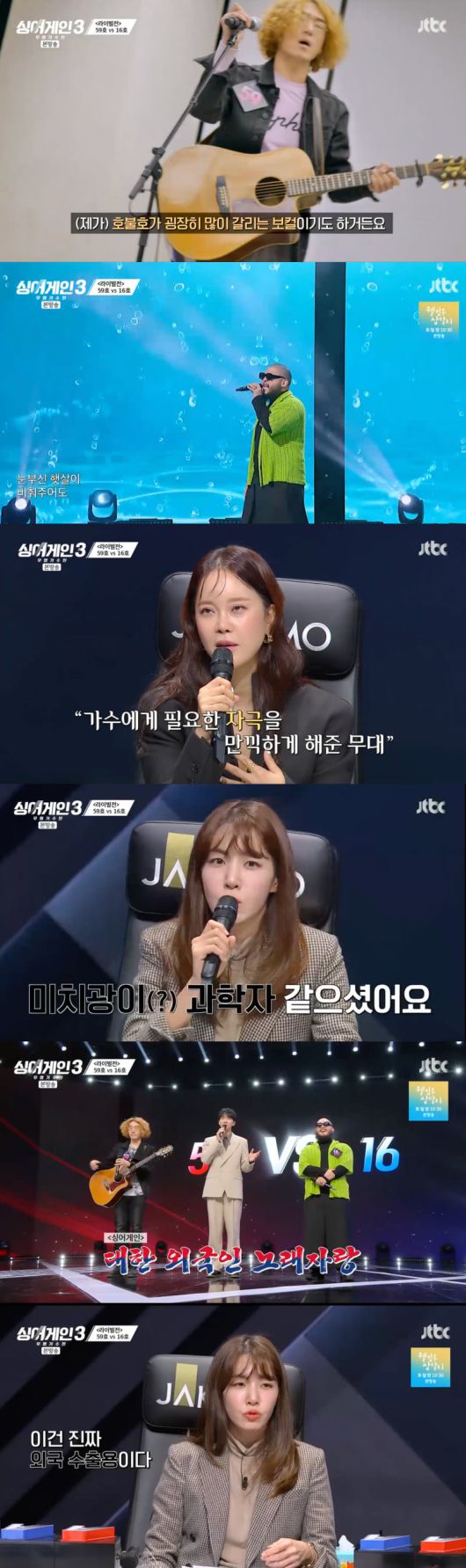 7일 방송된 JTBC ‘싱어게인3’에서는 3라운드 라이벌전이 펼쳐졌다. 1라운드에서 인상적인 무대를 펼쳤던 59호와 16호 참가자가 경쟁을 하게 돼 심사위원들은 놀라움을 금치 못했다.