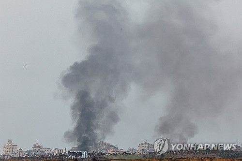 이스라엘군의 공습으로 검은 연기가 피어오르는 가자지구 |