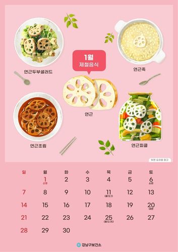 이 '2024 건강한 강남 제철 음식 달력'은 조선 헌종 15년(1849) 홍석모가 저술한 '동국세시기'(東國歲時記)에 소개된 사계절 식재료를 이용해 전통 건강식으로 바른 식생활 실천에 도움을 주고자 제작했다.