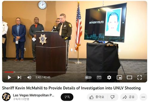 앞서 폴리토는 범행 당일인 6일 오전 11시 28분께 2007년식 렉서스를 타고 UNLV 캠퍼스에 도착해 경영대학 건물 남쪽 주차장에 차를 댄 뒤 무기를 챙기고 차에서 내렸다.