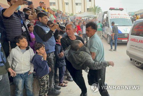 가자지구 남부 병원으로 급히 이송되는 부상자 |