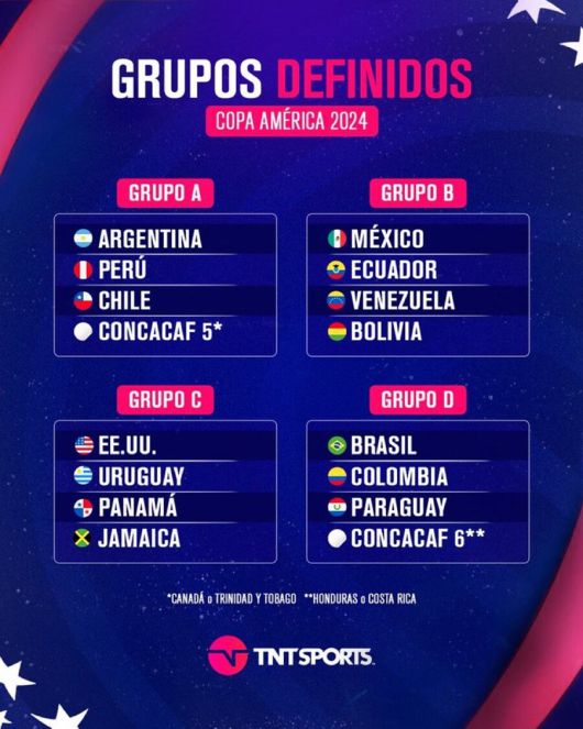 북중미 강호 멕시코가 톱시드를 받은 B조는 에콰도르, 베네수엘라, 볼리비아로 꾸려졌다. 개최국인 미국은 C조에서 우루과이, 파나마, 자메이카를 상대한다. 9회 우승에 빛나는 브라질은 D조에 속해 콜롬비아, 파라과이, 북중미 네이션스리그 승자(온두라스•코스타리카)와 토너먼트 진출을 놓고 경쟁한다.