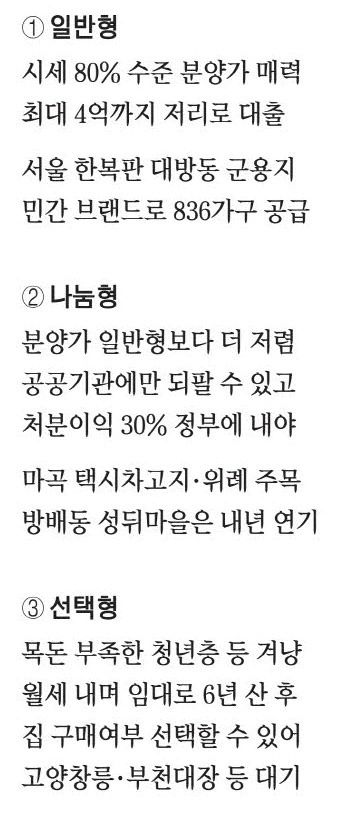 선택형은 먼저 6년간 임대로 거주한 뒤 분양 여부를 선택할 수 있는 주택이다. 목돈이 부족하고, 내 집 마련 의사가 불분명한 청년층 등을 겨냥한 유형이다.