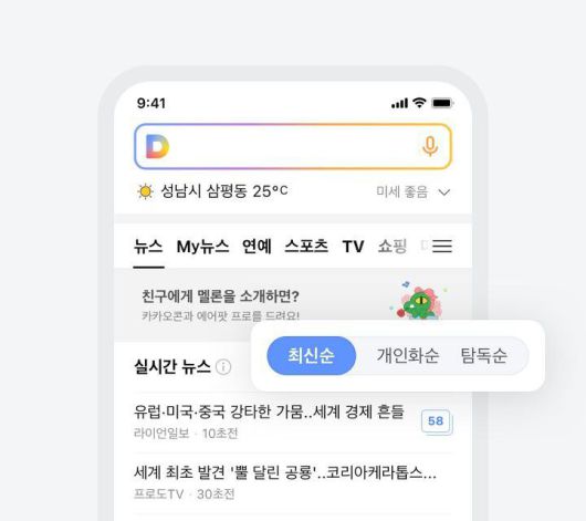 8일 ICT업계에 따르면 카카오는 오는 27일 모바일 첫 화면을 기존 ‘뉴스’ 탭에서 새로 만들어진 ‘언론사’ 탭으로 변경한다. 뉴스 탭은 다음 제휴 언론사의 실시간 뉴스를 최신순이나 개인화순, 탐독순으로 배열하고 있지만 언론사 탭은 이용자가 구독한 언론사 뉴스만 골라 볼 수 있는 공간이다.