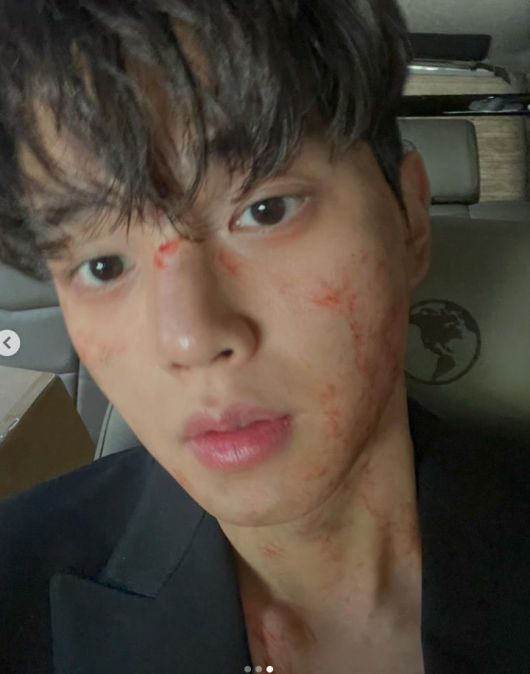 이날 송강은 얼굴에 피 분장을 한 채 카메라를 응시하고 있어 눈길을 끌었다. 피를 칠해도 가려지지 않는 미모가 감탄을 자아낸다.