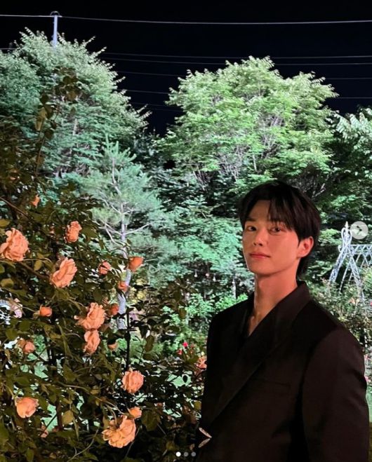 이어 그는 꽃 옆에서 살짝 미소지으며 카메라를 바라봐 설렘을 유발했다.