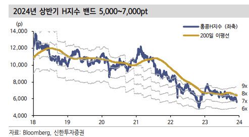 홍콩H지수는 연중 최저점에 근접하면서, 밸류에이션 부담은 크게 낮아졌다. 다만 증권가는 최악의 경우를 염두에 두고 이보다 낮은 5000포인트를 예상 하단으로 제시하고 있다.