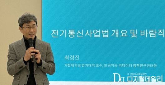 8일 최경진 가천대학교 법학과 교수는 서울 강남구에 위치한 한국통신사업자연합회(KTOA)에서 '전기통신사업법 개요 및 바람직한 개편 방향'이라는 주제로 강연을 진행했다.