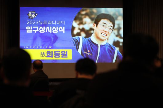그런데 이날 그 누구도 예상 못한 '깜짝 손님'이 등장했다. 바로 '무쇠팔' 고(故) 최동원 전 한화 이글스 2군 감독의 축사가 화면을 통해 전해진 것. 최동원 전 감독은 대장암 투병 끝에 2011년 작고했다. 일구회는 지금도 너무나 그리운 이름인 최동원 전 감독을 'AI 기술'로 재탄생시켰다.
