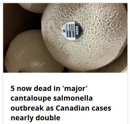 캐나다에서 멜론을 먹은 수백 명의 사람들이 식중독에 걸리고 이중 5명이 사망하는 일이 벌어졌다.