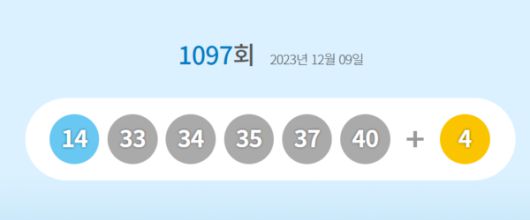 로또당첨번호조회' 1097회 당첨번호 14, 33, 34, 35, 37, 40 보너스 번호,4