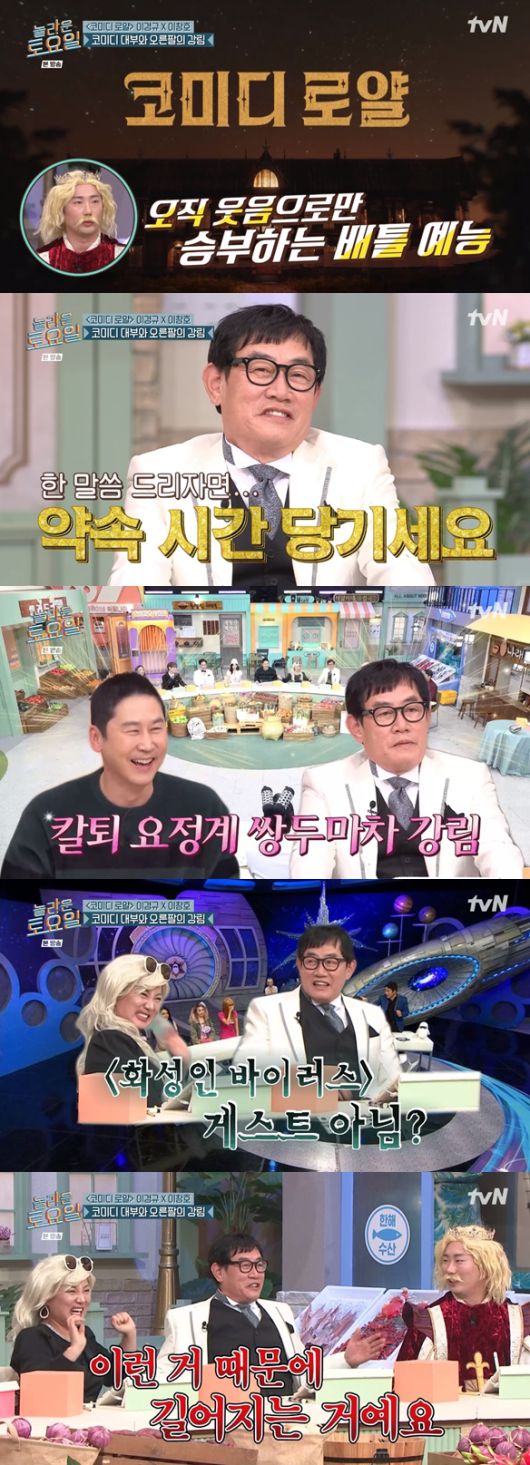 9일 방송된 tvN '놀라운 토요일'(이하 '놀토') 293회에는 개그맨 이경규와 이창호가 게스트로 출연해 '로열 패밀리' 특집을 진행했다. 두 사람은 넷플릭스 서바이벌 공개 코미디 '코미디 로얄'에 함께 출연한다.