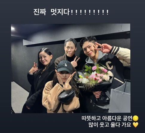 모자를 쓰고 캐주얼한 스타일을 한 수지와 환한 미소를 지은 밝은 표정의 박보검의 모습이 눈길을 끈다. 수지는 "진짜 멋지다!" "따뜻하고 아름다운 공연 많이 웃고 울다 가요"라는 글을 덧붙였다.