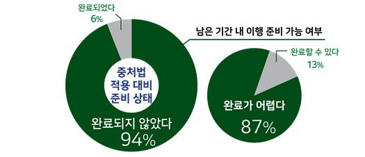 중처법 적용 대비 준비 상태 및 남은 기간 내 이행 준비 가능 여부 조사결과. (한국경영자총협회 제공) |