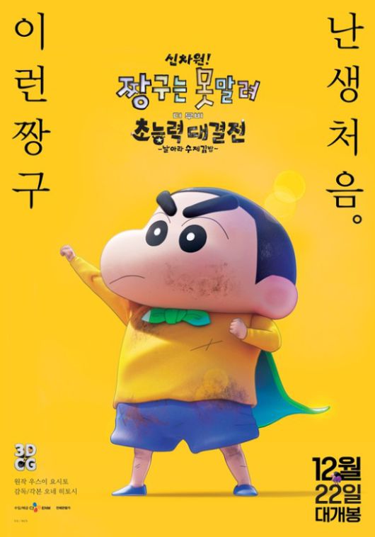 인기 캐릭터 '짱구'의 애니메이션 영화 '신차원! 짱구는 못말려 더 무비 초능력 대결전 ~날아라 수제김밥~'(이하 '신차원! 짱구는 못말려')이 오는 22일 관객을 찾아간다.