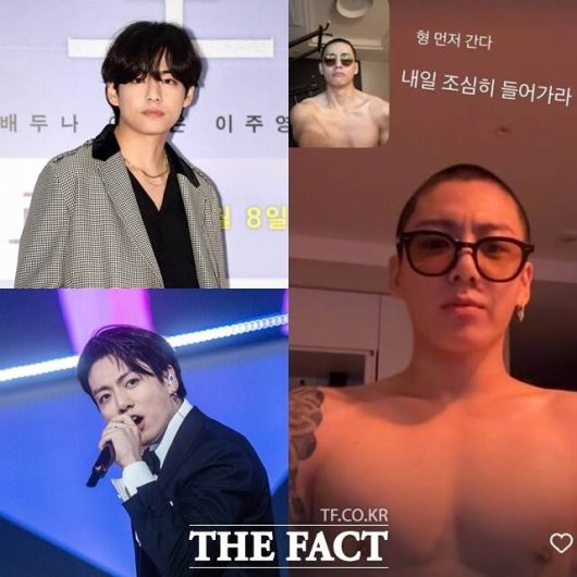 뷔는 11일 자신의 SNS에 정국과 영상 통화를 하고 있는 화면을 캡처해 업로드했다. 사진에는 삭발한 뷔와 정국이 선글라스를 쓴 채 영상통화를 하고 있어 이목을 집중시켰다. 또한 뷔는 "형 먼저 간다. 내일 조심히 들어가라"고 인사를 남겨 훈훈함을 더했다.