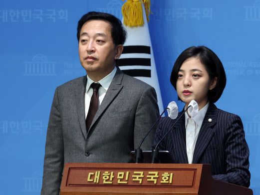 류호정 정의당 의원과 금태섭 새로운선택 창당준비위원회 대표가 11일 오전 서울 여의도 국회 소통관에서 인구정책 관련 기자회견을 하고 있다. 이날 류 의원과 금 대표는 기자회견을 통해 “병역 성평등과 관련한 사회적 논의를 시작할 것과 남성 육아휴직 전면화를 제안한다”고 밝혔다. (사진=뉴스1) |