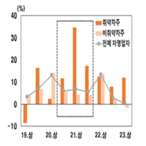 또 연령별로는 60대 이상의 고령층 자영업자가 많아 부채와 리스크 관리, 경영개선, 재기 지원 등 대책이필요한 것으로 조사됐다.