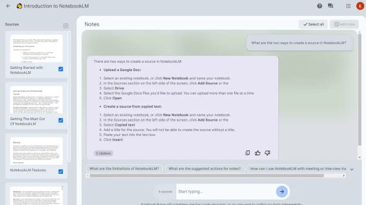 이 밖에도 선택한 소스에 노트북LM의 AI를 집중시키려면 소스 사이드바에서 특정 소스 세트를 선택해 채팅할 수 있다. 또 PDF와 복사된 텍스트도 지원한다. 텍스트를 복사해 붙여 넣어 새 소스를 만들고 제목이 생성되면 편집할 수 있다.