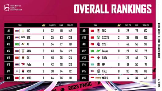 우승팀 IHC 이스포츠는 대회 1일 차를 6위로 마감했다. 2일 차에는 순위를 3위까지 끌어올렸으며, 마지막 3일 차에 뒷심을 발휘해 총 142포인트로 우승을 차지했다. 이로써 그들은 사상 최초로 'PMGC'에서 우승한 몽골 게임단이 됐다.
