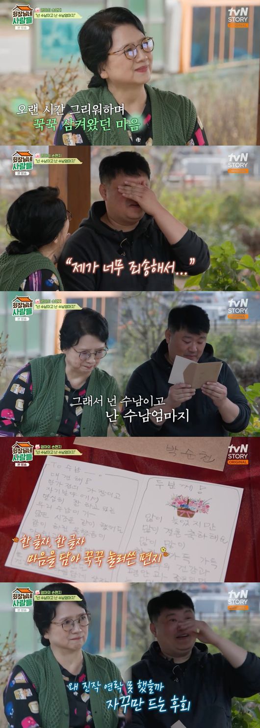 '수남이네'는 재회와 동시에 얼싸안고 눈물을 보였다. 강현종은 "죄송하다. 제가 연락도 못 드리고"라며 울컥했고, 박순천은 "결혼하는데 전화를 안 하냐. 너무 보고 싶었다"라며 얼싸안았다. 강현종 또한 "저도 너무 보고 싶었다"라며 함께 눈물을 보였다.