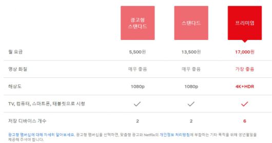 기존 베이직 요금제를 사용한 이들은 다른 요금제로 바꾸지 않는 한 계속 월 9500원짜리 요금제를 사용할 수 있다. 다만 넷플릭스에 신규로 가입해서 광고 없이 동영상을 감상하려는 이들은 최소 월 1만3500원을 지불해야만 한다.