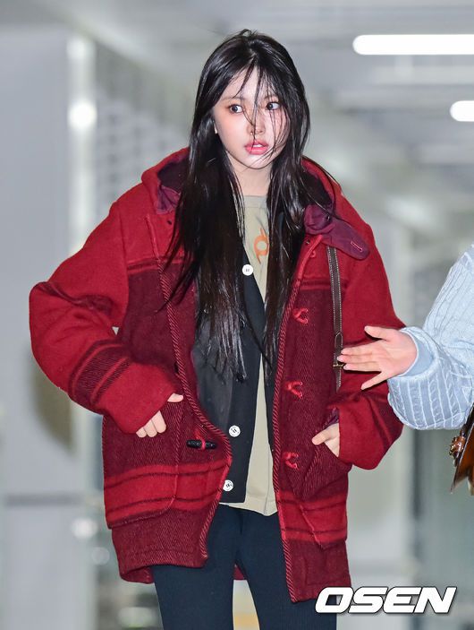 [OSEN=지형준 기자] 13일 오전 가수 뉴진스가 AAA어워드에 참석하기 위해 인천국제공항을 통해 필리핀으로 출국했다. 뉴진스 혜인이 출국장으로 향하며 포즈를 취하고 있다. 2023.12.13 / jpnews.osen.co.kr