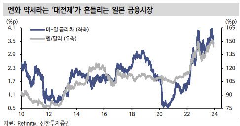 신한투자증권은 13일 올해 일본 증시를 견인한 동력은 미국의 강한 경기와 일본은행(BOJ)의 초완화적 통화정책이었다고 짚었다. 일본 기업들은 미국의 강한 수요와 엔저를 이익 개선으로 치환시킬 수 있었다. 강한 미국 경기는 여전하다.