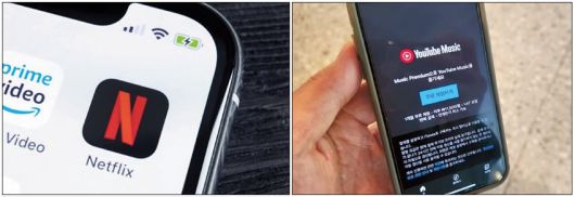 사진은 넷플릭스 애플리케이션(왼쪽), 유튜브 뮤직 결제 화면 |