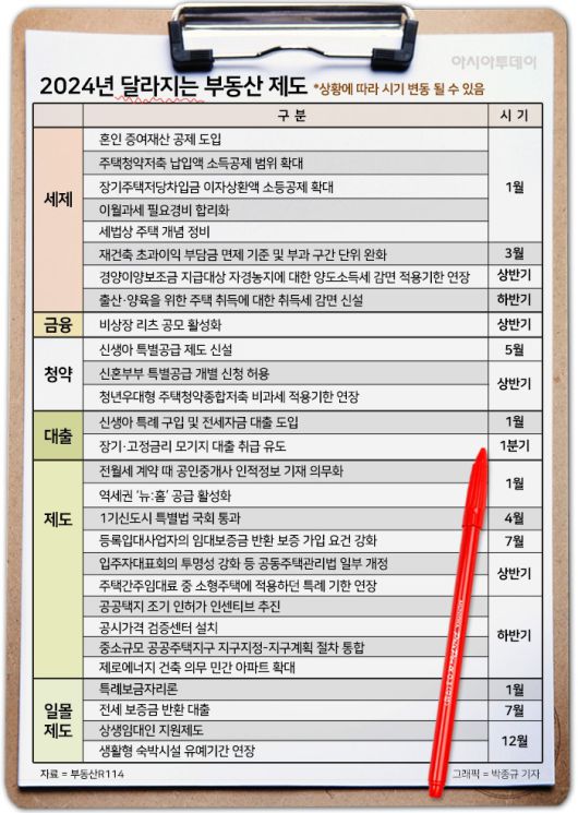 부동산114는 13일 이 같은 내용을 담은 '2024년 달라지는 부동산 제도'를 소개했다.