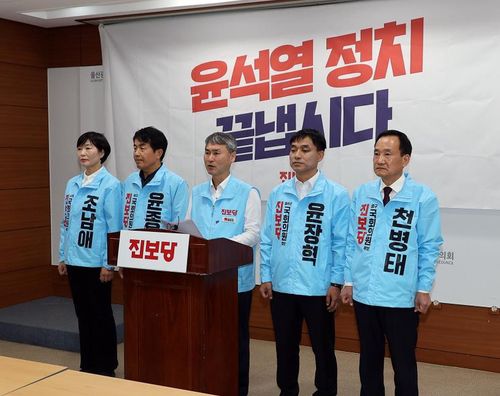 (울산=연합뉴스) 허광무 기자 = 진보당 울산시당은 "내년 총선에서 반윤석열 연대로 정권을 심판하겠다"라고 밝혔다.