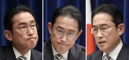 13일 기자회견에 임한 기시다 후미오 일본 총리 |