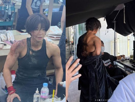 공개된 사진은 넷플릭스 드라마 ‘스위트홈’ 촬영 현장 속 그의 모습. 이시영은 한껏 펌핑된 팔 근육과 갈라지는 등 근육으로 놀라움을 자아냈다.