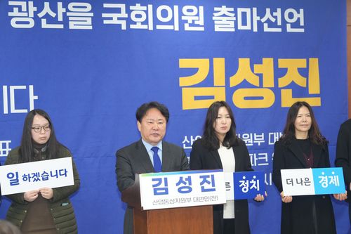 김성진 전 산업통상자원부 대변인은 14일 광주시의회에서 기자회견을 열고 광주 광산을 지역구 출마 포부를 밝혔다.