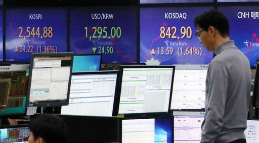 환호한 증시 14일 서울 중구 하나은행 딜링룸에서 직원이 업무를 보고 있다. 이날 코스피는 미국 연방준비제도(Fed·연준)가 3연속 금리 동결 및 내년도 금리인하 시사의 영향으로 전 거래일보다 33.52포인트 (1.34%) 오른 2544.18에 장을 마쳤다. 뉴스1 |