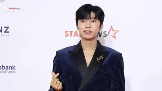 가수 임영웅이 2023 AAA 레드카펫에서 시그니처 포즈를 선보였다.