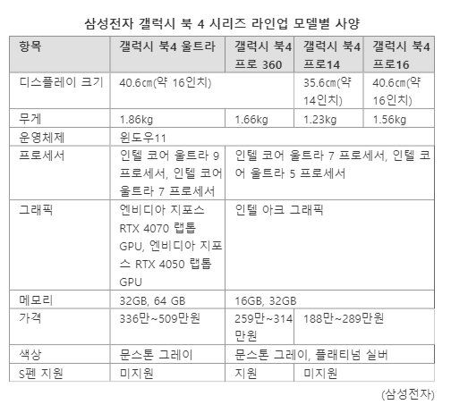 삼성전자 갤럭시 북 4 시리즈. 삼성전자 제공 |