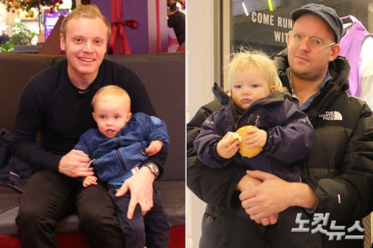 각각 1.5세 아이를 둔 스웨덴의 '라떼 파파' Henrik(왼쪽)·Caspar(오른쪽) 씨. 강지윤 기자 |