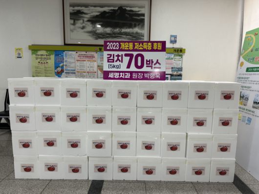 박형욱 원장은 “추운 겨울 김치 나눔을 통해 개운동 취약계층에 도움이 되길 바라며 앞으로도 소외된 이웃들을 위해 지속적인나눔을 실천하고 싶다”고 말했다.