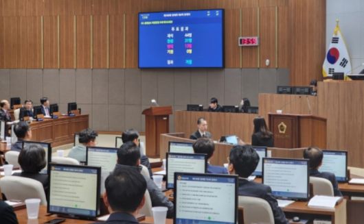 도의회는 15일 제348회 정례회 제4차 본회의를 열어 박정식 국민의힘 의원이 대표로 발의한 학생인권조례 폐지안을 재석의원 44명에 찬성 31명, 반대 13명으로 가결했다. 도의회 정당별 의석수는 국민의힘 34명, 더불어민주당 12명, 무소속 1명이다.