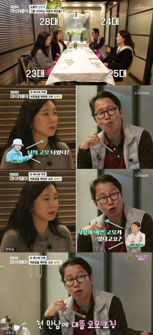 이날 53세 미혼인 심현섭은 청송 심씨 가문인 심혜진, 개그우먼 심진화, 방송인 심희재를 만났다. 심혜진은 심현섭보다 4살 많지만 고모뻘이었고, 심진화가 가장 서열이 낮았다. 심현섭은 심혜진에 대해 "영화 '은행나무 침대' 하실 때 엄마가 '너희 고모 나왔다'고 하더라. 개그맨 데뷔 후 방송에서 처음 만나자마 고모라고 했다"고 말했다.