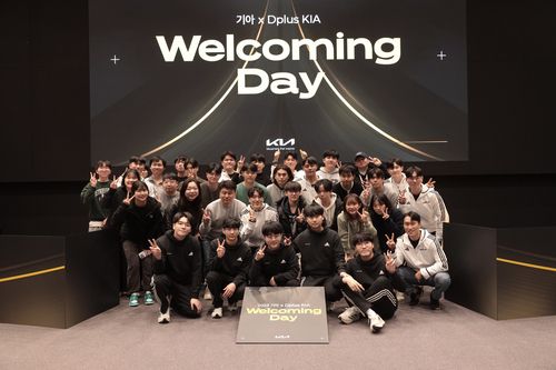 디플러스 기아 웰커밍데이에서 참가자들이 기념사진을 촬영하고 있다 |