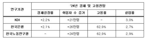 이들 기관들은 내년 반도체 위주의 수출 회복세가 전망되지만, 제조업의 경우 경기 회복이 고용 회복으로 이어지는 데 시차가 존재하는 데다, 고금리 기조 등을 고려할 때 노동 수요 측면에서 불확실성이 존재한다고 밝혔다.
