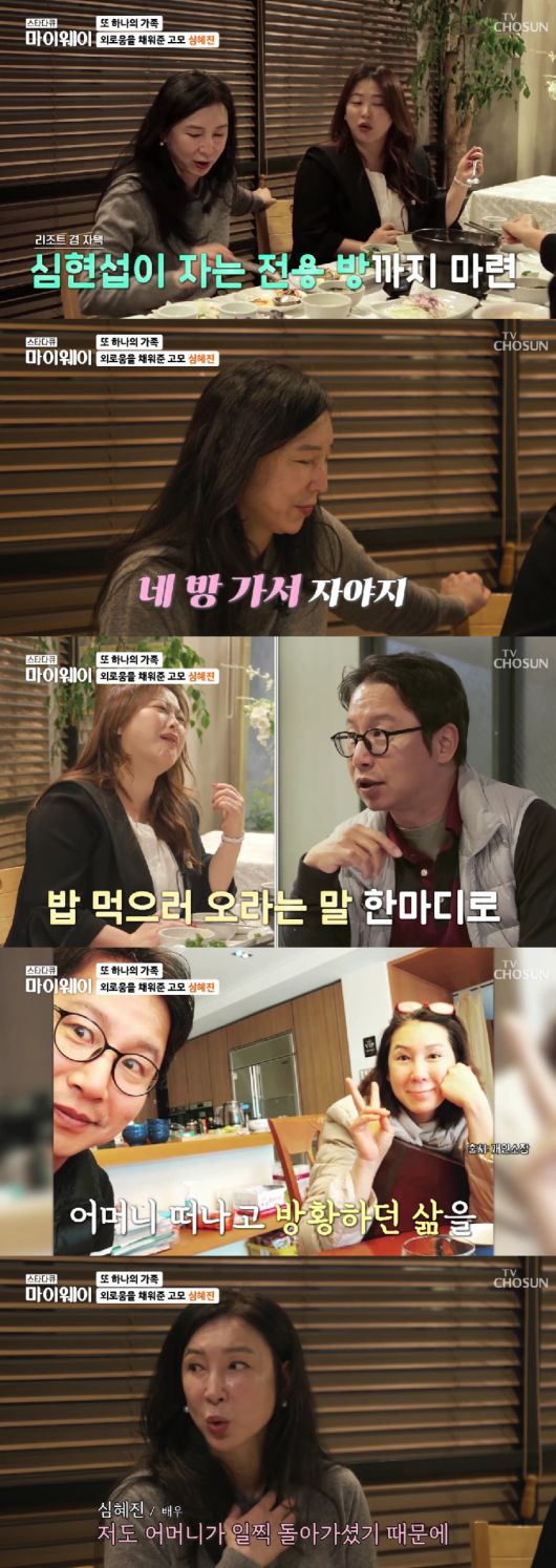 심현섭은 이후 모친을 12년 간 지극정성으로 간병까지 했다. 이어 모친을 보내고 정성을 쏟지 못해 후회만 남았다는 심현섭은 혼자 남은 순간 버팀목이 된 고모 심혜진을 언급했다.
