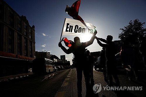 '신헌법 반대' 깃발 든 칠레 국민 |