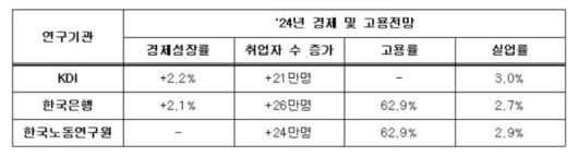기관들은 내년 반도체 위주의 수출 회복세가 전망되지만 제조업의 경우 경기 회복이 고용 회복으로 이어지는 데 시차가 존재하고 고금리 기조 등을 고려할 때 노동 수요 측면에서는 불확실성이 존재한다고 분석했다.