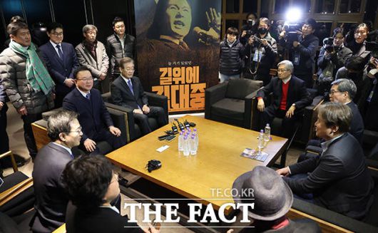 [더팩트ㅣ장윤석 기자] 이재명 더불어민주당 대표, 김부겸 전 국무총리, 김동연 경기도지사 등 참석자들이 18일 오후 서울 용산구 CGV용산아이파크몰에서 열린 '길위에 김대중' VIP 시사회에 참석해 영화 제작 관계자들과 대화를 나누고 있다.