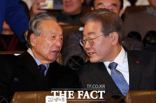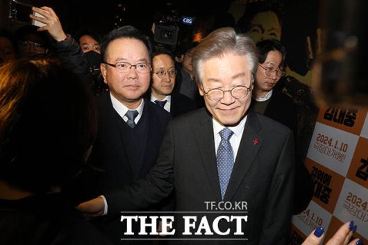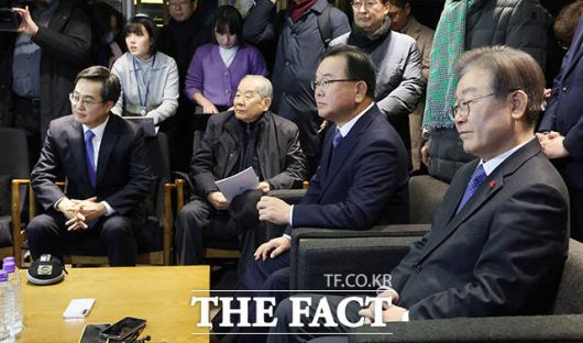 [더팩트ㅣ장윤석 기자] 이재명 더불어민주당 대표와 김부겸 전 총리를 비롯한 참석자들이 18일 오후 서울 용산구 CGV 용산 아이파크몰에서 열린 '길 위에 김대중' VIP 시사회에 참석하고 있다.
